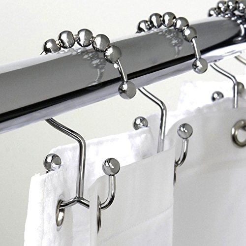 VALUE PACK - The Double Glide Roller Shower Curtain rings/hooks glide effortlessly on any shower curtain rod. Pack of 12 Hooks in a PVC pack. This set of twelve metal roller hooks provides an attractive and smooth-operating system for hanging a shower curtain, designed for the most common sized shower rail used by 99% of the population