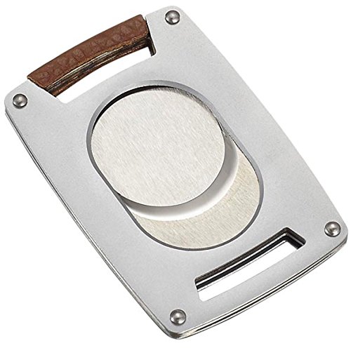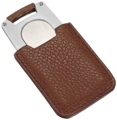 Visol VCUT907 "Pizon" Stainless Steel Cigar Cutter with Brown Leather Case, Chrome