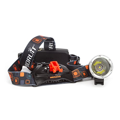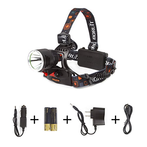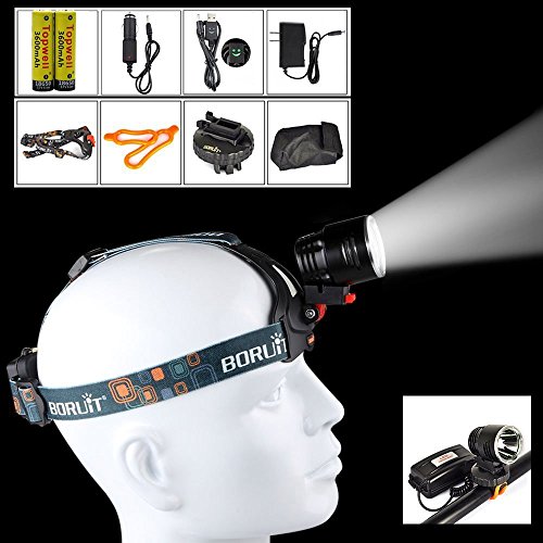 Boruit 2000 Lumens Rechargeable Bike Flash Head Lamp with 3 Brightness Modes, 2-Piece 18650 Batteries, USB Cable and Charger