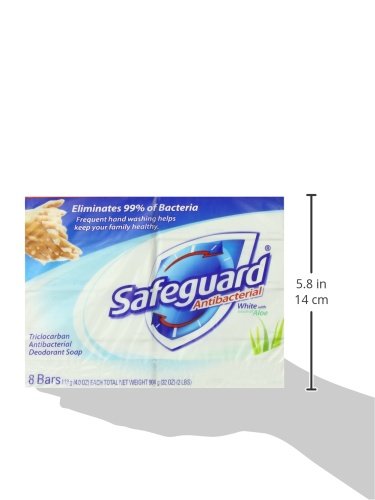 Safeguard Antibacterial Soap White with Aloe Bath Size Bars, 8 Count