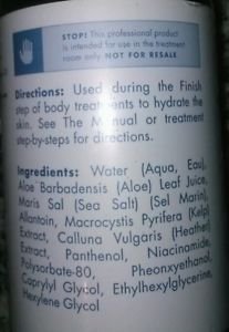 -. Feature : Hydrating Tonic for body / Used during the finish steps of Body Treatments / Hydrates the Skin