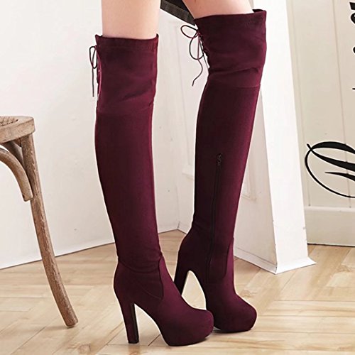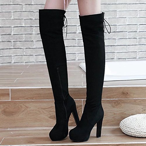 * Heel Height:11.5cm * Shaft: 55cm * Boots opening: 37cm * Platform Height: 3.5cm * Material: Suede * Inner Material: Suede * Sole Material:Rubber * Color: Black, red, Blue * Toe Type: Round Toe * Closure Type: Zipper * Heel Type: Block Heel * The package will be delivered to you about 7-12 business days. * Please measure the sizes of your feet before you buy this item. If your foot is slightly wider or one of your toes is longer than usual, please choose the larger size. * Q1: What can I do if I have any problems? * A1: Please send email to tell us your problems first,we will reply you in 12 hours(except holiday) and try to find the best solutions,thanks for your trust! * Q2: What can I do if the products have problems? * A2: Please send us email with the problem products picture,which can help us to solve the problem in time! * AIYOUMEI commits to the shoes' design, craftsmanship have a unique study to the Excellent quality of products and timely courtesy of customer service experience, adhering to the customer is God's philosophy.Our product main conclud boots, military style, espadrilles, flat, lace-ups, loafers panties, High heels, plateau, casuals, dress shoes, oxfords and so on.If there are any problems, please feel free to contact us at any time, we are always here to help you. 0 |
