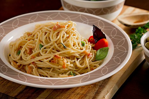 Studio : CORELLE Publisher : CORELLE Binding : Kitchen Product Description A muted taupe border is transformed by intertwining spheres into a spirited, yet sophisticated modern pattern. Our simple beaded pattern offers classic detailing that's always in style. The bright white and contrasting bold colors provide a solid foundation for any table, sure to fit into any decor. 0