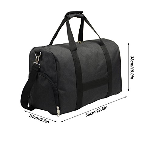 -. Feature : 【QUALITY MATERIAL】: This gym bag is made of high quality oxford cloth, durable and lightweight / 【LARGE CAPACITY】: The size of this bag is 22.8''L x 9.5''W x 15''H. Roomy enough to carry more items for you; it can satisfy you to carry more than 2 days clothes. A great versatile travel duffle bag for gym, outdoor,weekend trips or daily travel / 【SHOES COMPARTMENT】: Equipped with a shoe compartment, easily pack your shoes in its own compartment, separating shoes or other items from the main bag / 【WELL CONSTRUCTED】: 1 main compartment with two-way zipper closure, 1 inner zipper pouch, 1 side shoe compartment, 1 side elastic pouch, 1 front zipper compartment / 【MULTI-USAGE】: It can used in many occasion, such as gym, sports, travel, carry on, lage,camping, hiking, weekend travel and so on. You can pack all the things you need into the bag when you out for sports. This will be a good choice