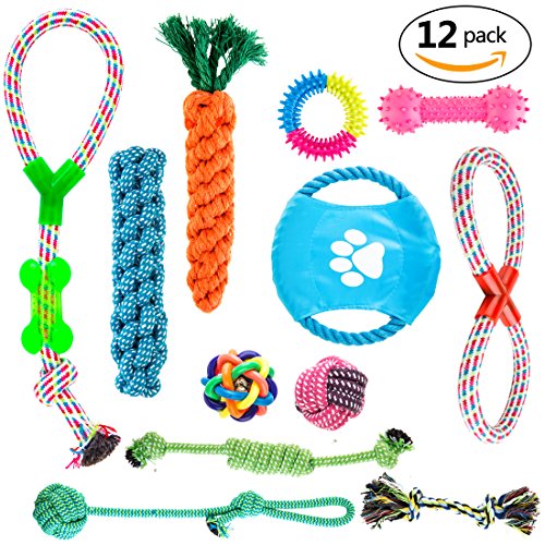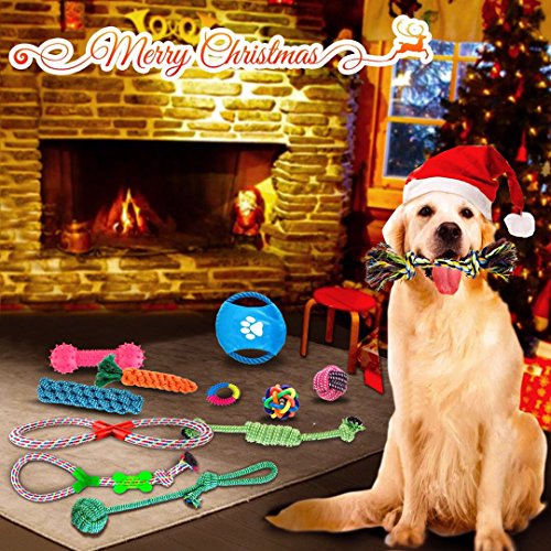 Package Included: 1 Interactive toys 1 Rope Bones 1 Dog Rope Balls 1 Rope carrot 1 Tug of War Ball 1 Rope Frisbee 1 Squeaky Ball with bell 2 Dental Teeth Cleaning Toys 3 Chew Ropes