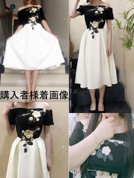 ウエスト切り替えできれいなボディラインと派手過ぎない花模様で落ち着いた印象に。