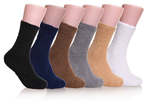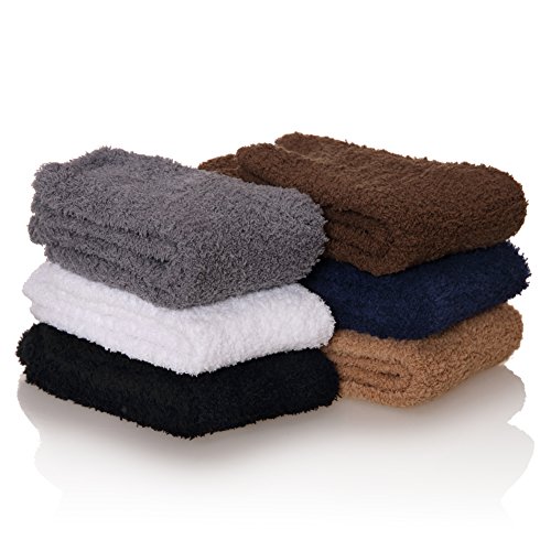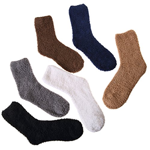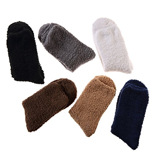 -. Binding : Apparel -. Brand : DYW -. Department : mens -. Feature : SUPER SOFT - High Quality Material:97% Polyester , 3% Spandex .Super soft, fluffy relaxing feel comforts and warms feet for everyday activities and even during sleep in fall and winter; also wear chenille socks in air conditioned room in summer. / One Size: 9-11 (Fit Men's Shoe Sizes 8-12). / HIGH QUALITY: The elastic bands at the ankle do not compress your legs giving you the best, comfortable wear experience for everyday activities and even during sleep. Very soft and plush socks made of premium Microfiber provide maximum coziness for your feet keeping them warm, soft and sweat-free. / MENS FUZZY SOCKS:These socks are perfect during the fall and winter seasons. Keep your feet warm and cozy this winter. It almost feels like walking on a cloud! / Socks washing instruction and package: Both hand and machine wash are OK; Low temperature wash and open-air drying. Occasions: Keep your feet warm in the autumn and winter. -. IsAdultProduct : 0 -. ProductGroup : Apparel -. ProductTypeName : SOCKSHOSIERY -. Size : Free Size -. Title : Men's 6 pairs Solid Color Super Soft Cozy Fuzzy Winter Warm Crew Socks