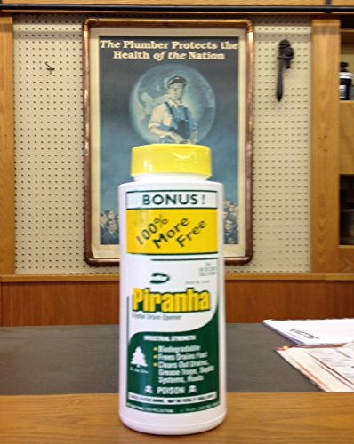 -. Binding : Kitchen -. Brand : Unknown -. EAN : 0024924306024 -. Feature : Biodegradable and environmentally safe / Dissolves grease, hair and root growth in sewer lines instantly / Can be made to any strength desired / Will actually enhance the growth of active bacteria in septic systems if used regularly / Can be stored indefinately without the fear of escaping odors -. Label : MyPlumbingStuff -. Manufacturer : MyPlumbingStuff -. Model : 30-602 -. ProductGroup : Home -. ProductTypeName : HOME -. Publisher : MyPlumbingStuff -. Size : Large -. Studio : MyPlumbingStuff -. Title : Piranha Crystal Drain Opener * 100% More FREE * -. UPC : 024924306024
