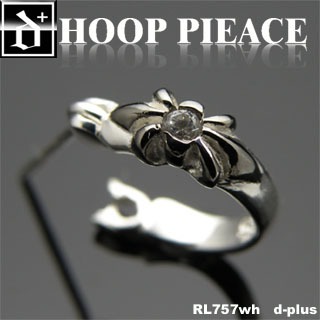 シルバー925製フープピアス!正面のリリークロス中央のWhite CZ(ホワイトジルコニア)がキラリと光るフープピアス!リリークロスもベースのシルバー上から加工を施し、黒っぽく仕上がっています。