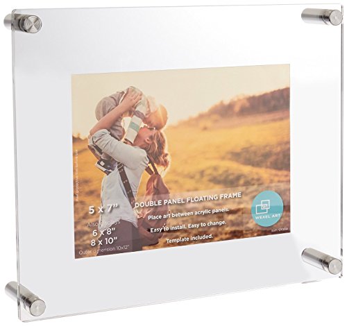 Float your artwork and posters off the wall while fully enclosing your art in between two panels of acrylic. Ideal for 5x7", 6x8" or 4x6" images. When you want to change out your display, just unscrew the caps on the hardware and remove the acrylic.Feature