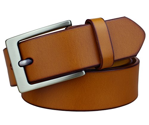 Bullko Men's 38mm Leather Belt Yellow Size 30-32inch