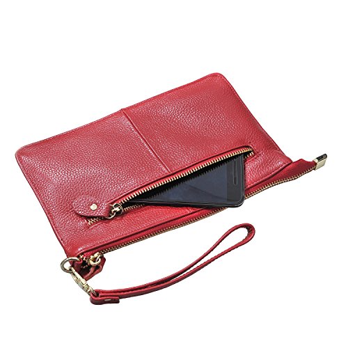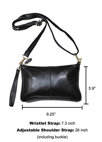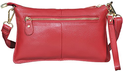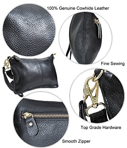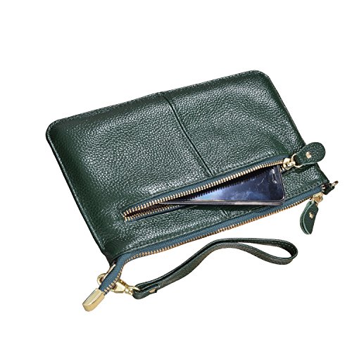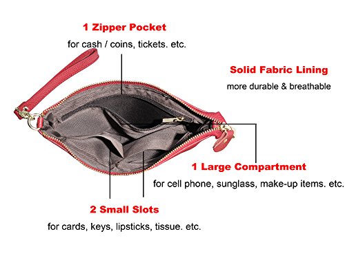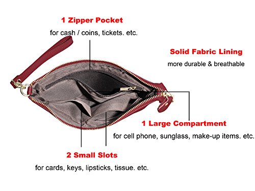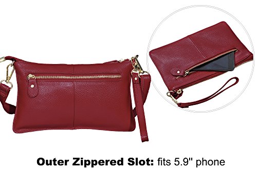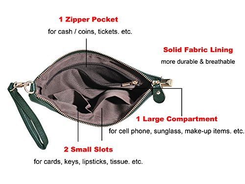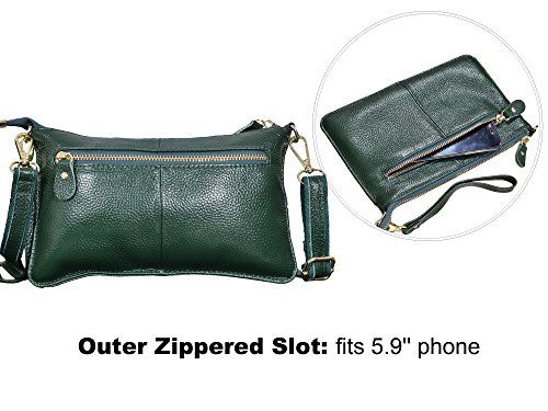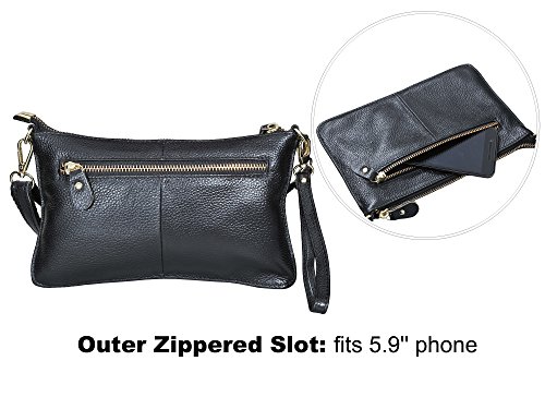 Product Description Beurlike Womens Genuine Leather Smartphone Crossbody Bag, Zipper Clutch Purse Small Compartment Wristle With 2 Strap