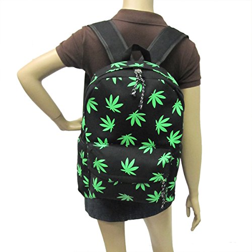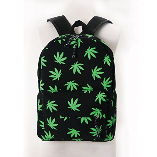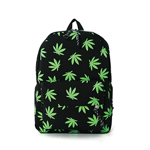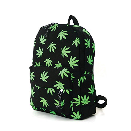 Fresh Green Palmate Leaves Printed Canvas Backpack