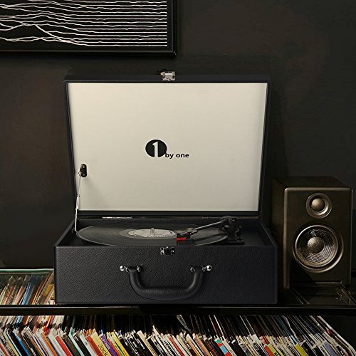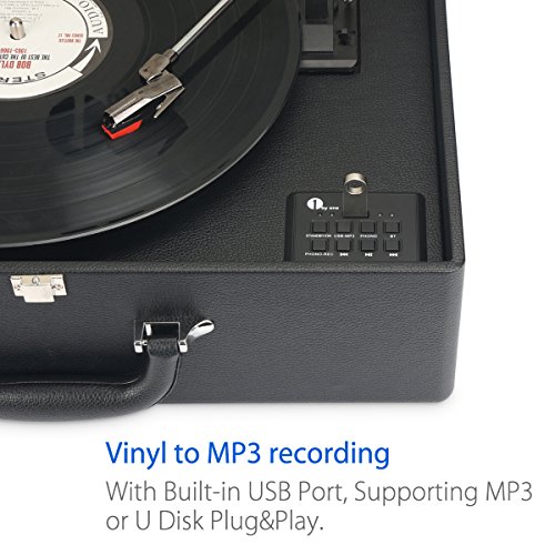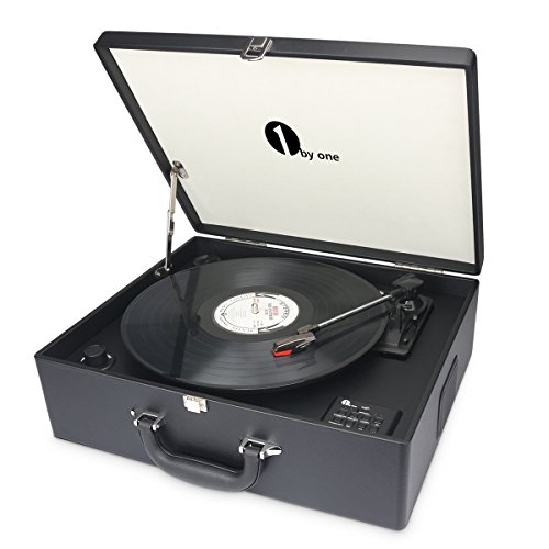 Title : 1byone Suit-case Style Turntable with Speaker, Bluetooth support and Vinyl-To-MP3 Recording, Belt Driven Record Player, Black