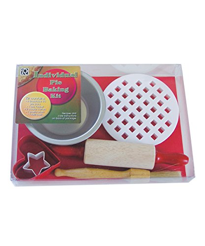 - Includes: Four 5" pie pans, 1.5" diameter rolling pin, 7.25" long round brush, mini lattice pie top cutter, 2.5" red heart cookie cutter, and a mini white star cookie cutter