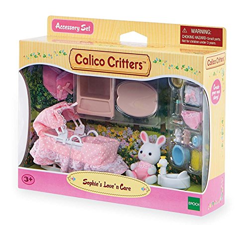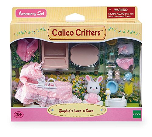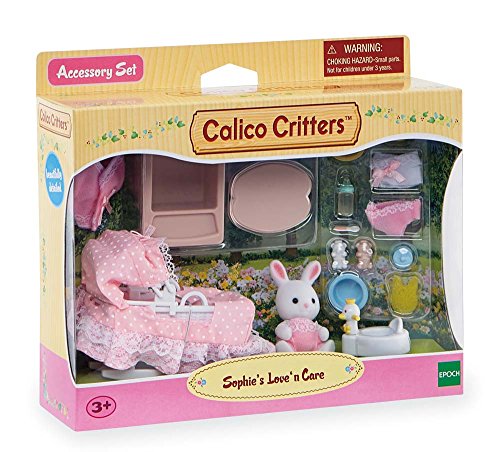 -. Feature : SOPHIE'S LOVE 'N CARE: Ready-To-Play, everything you need to take care of Sophie Snowbunny is in this set. / TONS OF ACCESSORIES: Includes Sophie Snowbunny, tub, table, chair, rocking bassinet, bunting, baby clothes, blanket, toys, dishes and more! / TIMELESS CALICO CRITTERS- Calico Critters is a unique and adorable range of distinctive animal characters with charming and beautifully detailed homes, furniture and accessories. They live, work and play in an idyllic and wonderful place called Calico Village. These timeless, classic toys promote wholesome family values. These life-like, award-winning miniature toys also inspire imagination and creativity. / EDUCATIONAL PLAY- These adorable playsets promote healthy cognitive development through pretend play. Acting out storylines will exercise narrative and critical thinking processes, while fine motor skills and dexterity improve as little ones manipulate the fun environments. / PRODUCT SPECIFICATIONS: Sophie Snowbunny measures 2″ tall. She has jointed, poseable arms and legs. Sophie's head turns and her clothing is removable. Can be used independently or with all Calico Critters figures, houses, shops and vehicles. Please note these products contain small parts and are not intended for children under 3 years of age.
