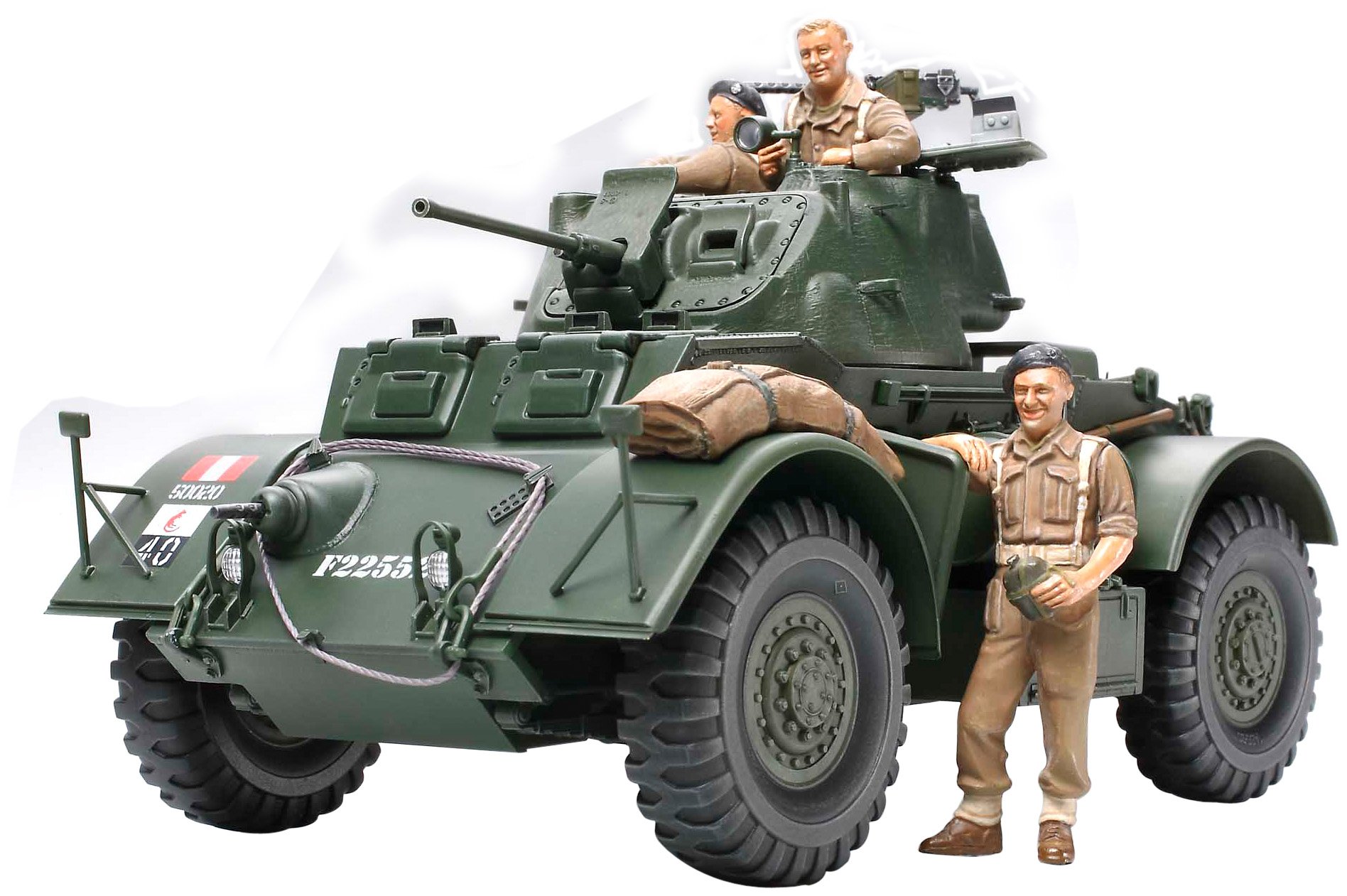 It is a 1/35 scale, plastic model assembly kit of America's armored car, Staghound Mk.I used in the British Commonwealth forces in the second half of World War II.