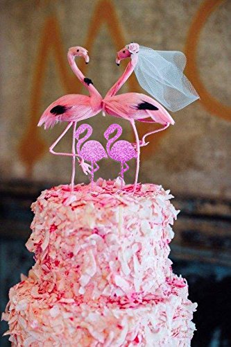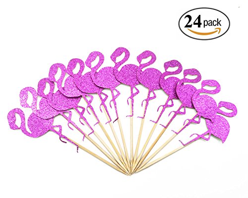 24 Pcs Purple Flamingo Cupcake Toppers for Luau Hawaii Birthday Wedding Beach Party Decorations
