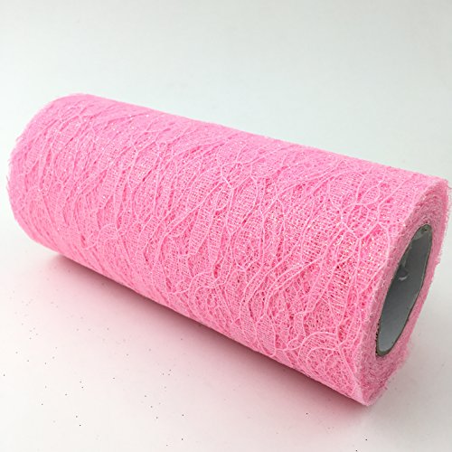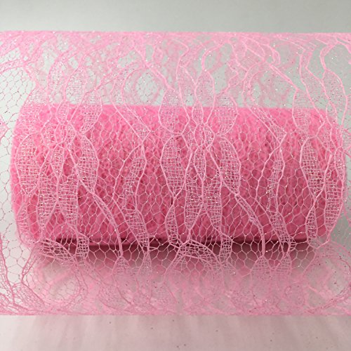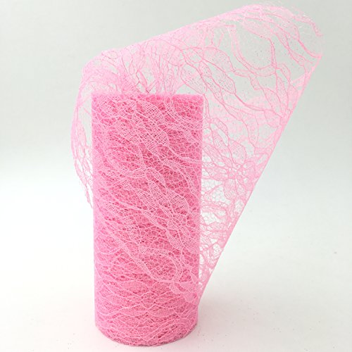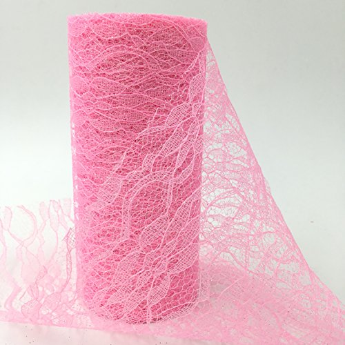 ASIBT 6 Inch x 10 Yards Vintage orchid pattern Lace Roll Netting Fabric Tulle Roll For Tutu Skirt Table Runner Chair Sash DIY Wedding Party Art Decor (pink N03)