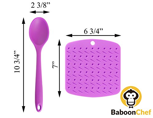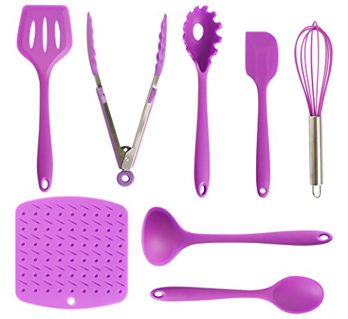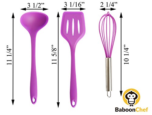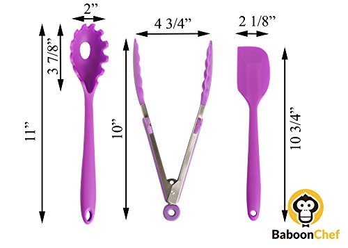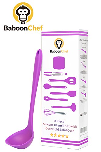 BaboonChef Re-Designed Silicone Kitchen Utensils Set 8 Piece Purple Cooking Utensil Tools including