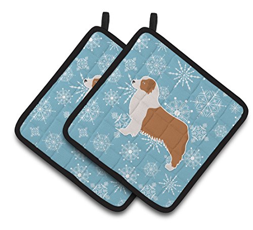 Caroline's Treasures Winter Snowflake Australian Shepherd Dog Pair of Pot Holders BB3533PTHD, 7.5HX7.5W, Multicolor