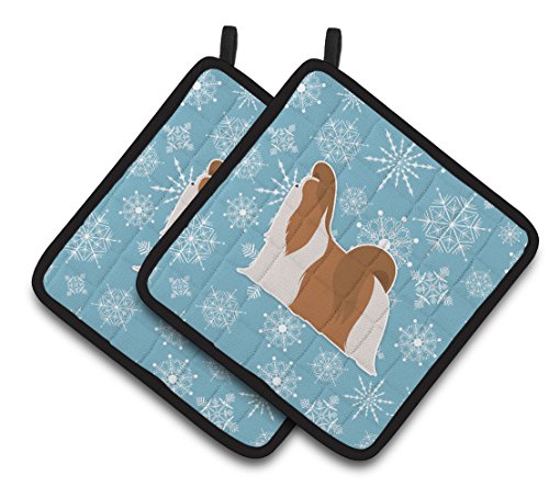 Caroline's Treasures Winter Snowflake Shih Tzu Pair of Pot Holders BB3546PTHD, 7.5HX7.5W, Multicolor