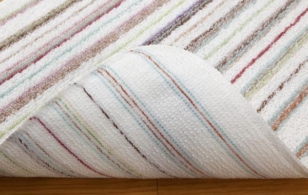 幅240cmのロングサイズ☆カラフルでおしゃれなストライプ柄のキッチンマットです。裏面に滑りにくい加工を施しているので、横ズレしにくいです!! |
