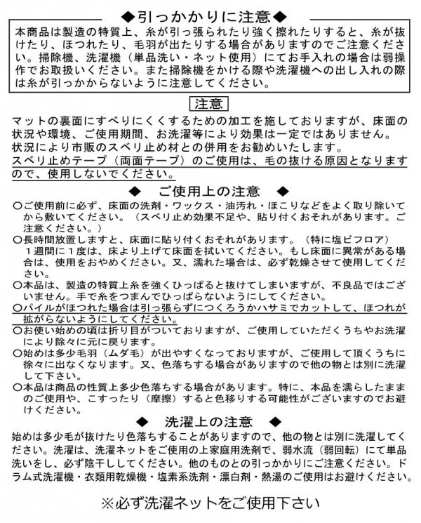 | 素材・材質 | アクリル・ポリエステル・その他(裏面すべりにくい加工) |