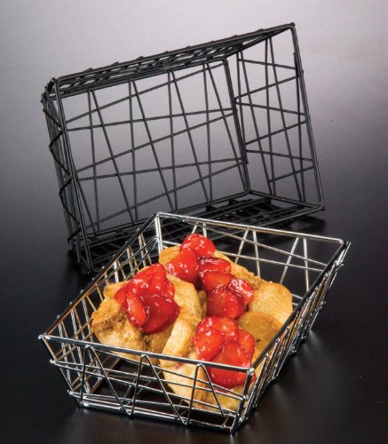 Studio : American Metalcraft Publisher : American Metalcraft Binding : Kitchen Product Description This Zorro baskets is both fun and contemporary. The frame of the basket is made from strong black metal and each side is connected with zigzagging Z shapes. The wire construction means this basket will outlast any wicker or plastic model. One can use these baskets at catered events for baked goods, restaurants for sandwiches and burgers or even at home for whole fruits and vegetables. It is rectangular shape small size basket. 0