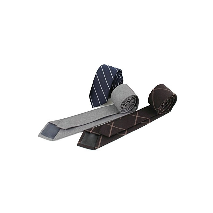 YuraYukits (narrow)내로 타이 넥타이 3개 세트 비지니스 그레이 네이비 암갈색 무지 스트라이프 체크