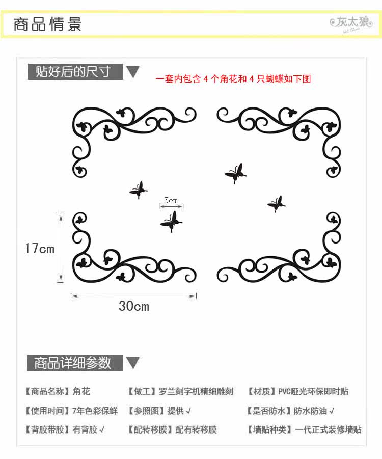 墙贴角花 卧室客厅浪漫满屋卫生间电视背景儿童墙贴 一套4边