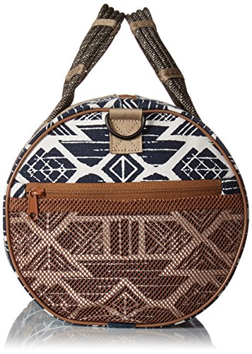 -. Feature : Small duffle, adjustable shoulder strap, two fixed rope hand straps / Main compartment with zip closure, two external side pockets / One internal zip pocket / Dimensions: 8.5" x 17" x 8.5" / Pockets: 1 interior zip, 3 exterior