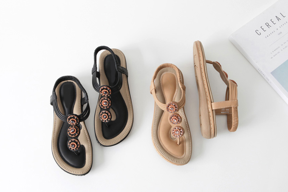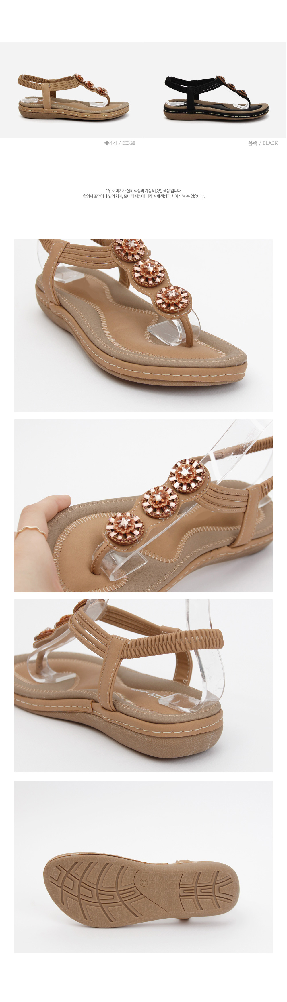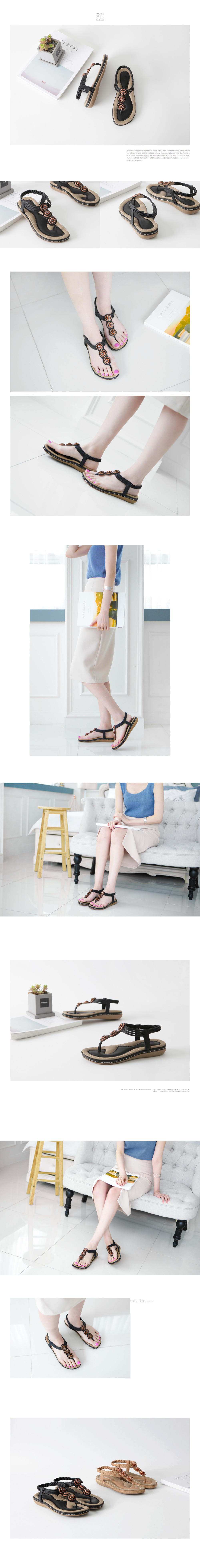 에스닉한 분위기가 물씬 풍기는 쪼리 샌들 입니다 발등위의 포인트가 에스닉한 무드가 물씬 풍기면서 뒷축을 안정감 잇게 잡아줄 밴딩으로 편안한 착화가 가능해요 바닥전체의 쿠션감으로 폭신폭신한 느낌을 선사하며 텐션감까지 좋아 신은듯 안신은듯 ~ 만족스러운 착화감을 느끼실수 있어요 :) 다양한 스타일에 다 어우러져 데일리 및 휴가지에서도 활용도 높게 신어질 슈즈입니다 고민말고 데려가셔서 활용도 높게 신어 주세요~