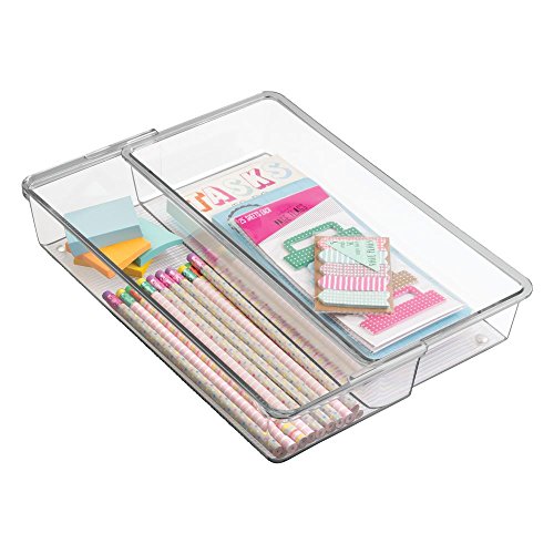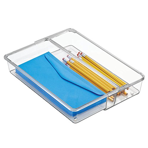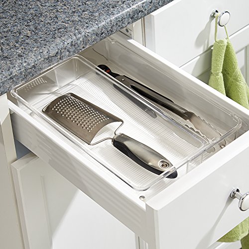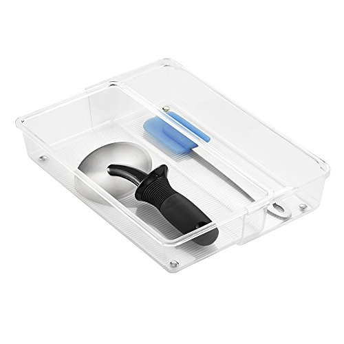 InterDesign Linus Expandable Kitchen Drawer Organizer for Silverware, Spatulas, Gadgets - 12" x 6" x 2.5", Clear