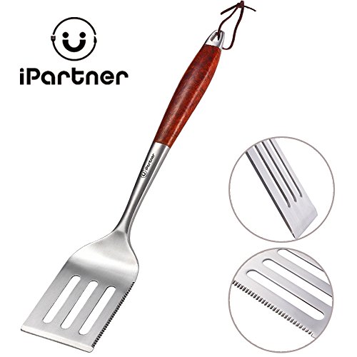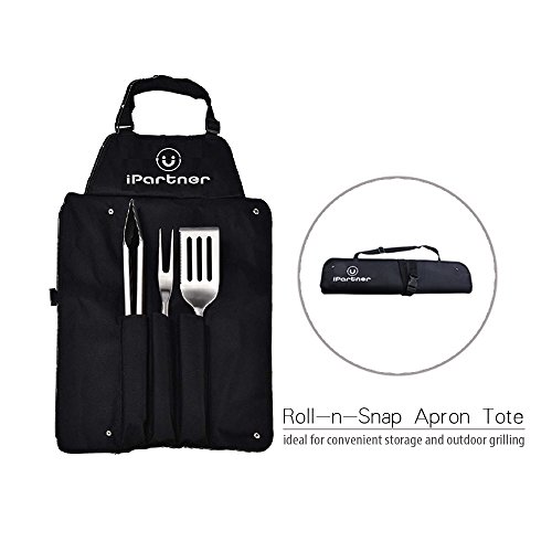 iPartner 3 pieces Heavy Duty BBQ Set with Elegant Design includes the Essential Tools for grilling: Spatula, Tongs and Apron Tote convenient for storage and out-door grilling.
