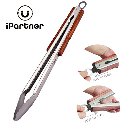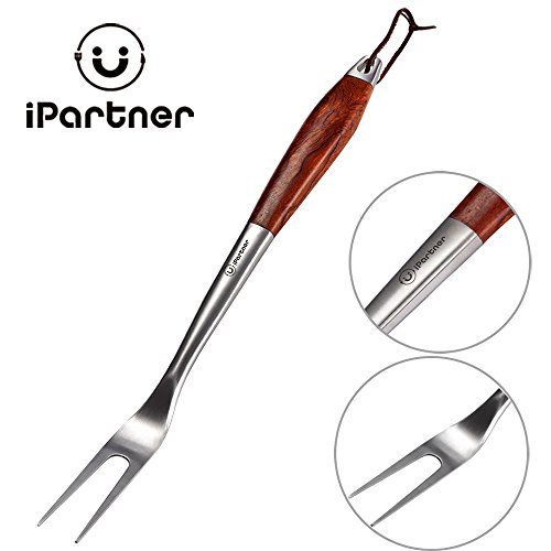 iPartner Grilling Barbecue Tool Set | 3-Piece Portable Utensil Kit Include BBQ Spatula Tongs & Fork w/Apron Tote Easy to Storage | Heavy duty Stainless Steel & Rosewood Handle | Great Gift Set for Men