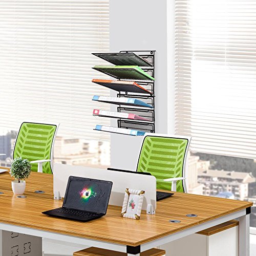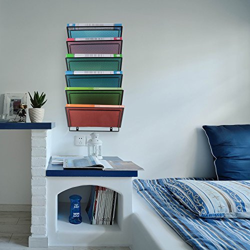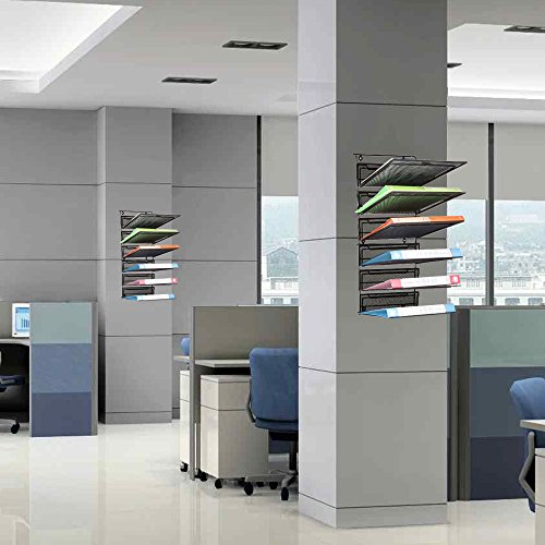 Save More Space Easy to mount and doesn't take a lot of space but stable enough to hold enough files and magazines . Strong Stable Design Made of sturdy metal with a black finish, this wall file organizer boasts 6 slots designed to hold magazines vertically.