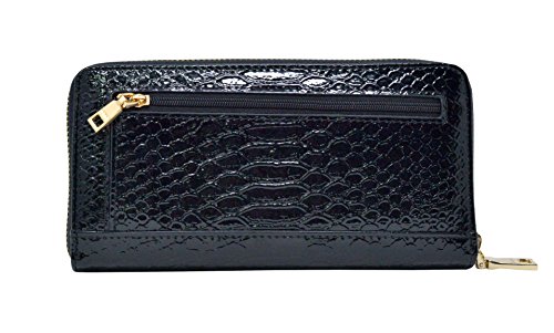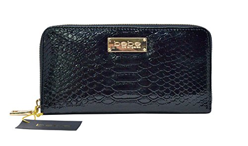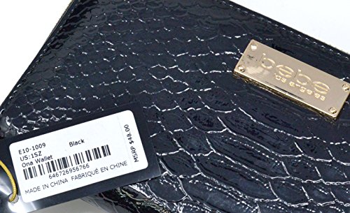 (bebe)/Accessories/Wallets, Money Key Organizers/DIRECT FROM USA/bebe Patent Faux-Leather Crocodile Print Wallet (Black)