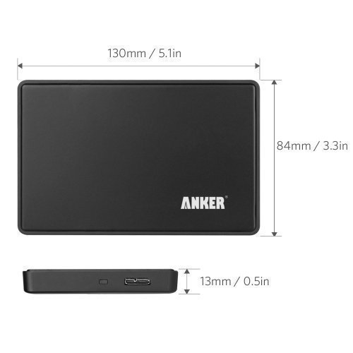 Lightweight and sturdy. At less than half an inch thick (13mm) and lightweight, the Anker USB 3.0 HDD/SSD External Enclosure offers 360° protection to your hard drive in a super-slim package. Made with premium plastic, the enclosure can resist scratching, drops and bumps with ease.