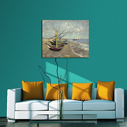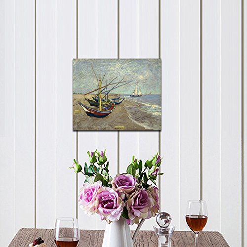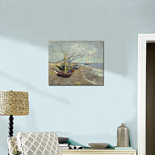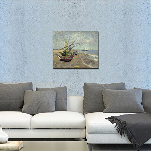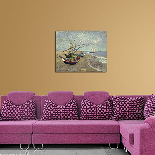 -. Title : Wieco Art Fishing boats on the beach at Les Saintes Maries Canvas P.R.Ints of Van Gogh Oil Paintings Giclee Artwork for Wall Decor Seascape Picture P.R.Int on Canvas Art