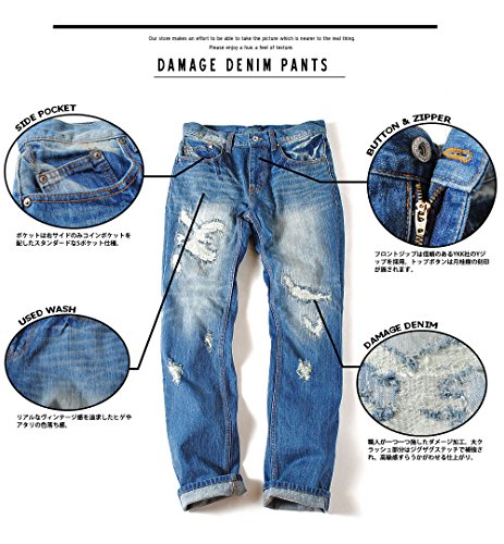 -. Title : FLG(フルグロウ) 12oz ダメージ デニムパンツ ジーンズ クラッシュデニム