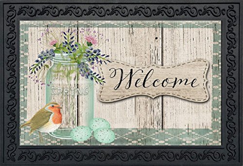 -. Title : SP.R.Ingtime Welcome Doormat Indoor Outdoor Rustic Floral Mason Jar 18" x 30"