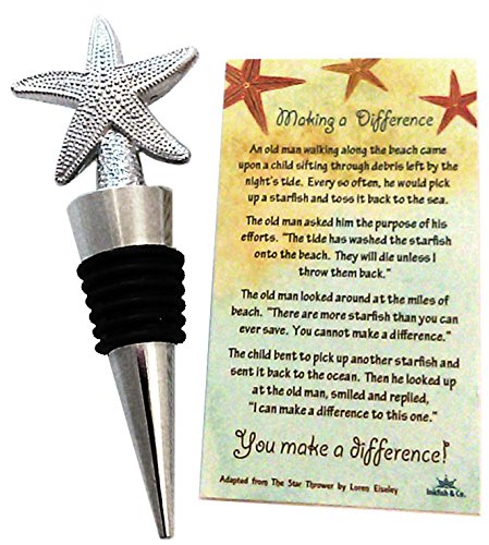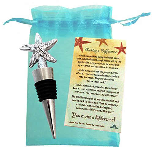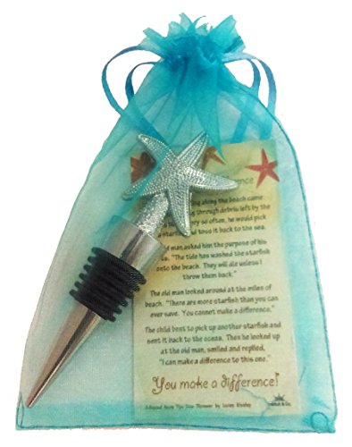 -. Binding : Kitchen -. Brand : Inkfish and Co. -. Color : Silver -. EAN : 0753760997607 -. Feature : BEAUTIFUL Silver Finish Double Sided Starfish Design Bottle Stopper / SHOW Your Appreciation with this MEANINGFUL Gift for Someone Special who goes out of their way to make a difference. / READY TO GIVE in a Drawstring Organza Bag and a Lovely Gift Enclosure about Making a Difference / WRITE Personal Message on Back of Gift Card or leave blank / PERFECT Host or Hostess Gift, Corporate Gift, or for a SPECIAL teacher or Godparent -. ProductGroup : Home -. ProductTypeName : HOME -. Title : Decorative Starfish Poem Story Wine Bottle Stopper Silver with Turquoise Organza Gift Bag -. UPC : 753760997607