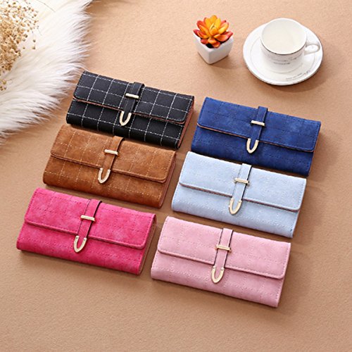 -. Title : Kukoo Women Suede Leather Long Wallet Argyle Plaid Pattern Slip-on Clutch Bag Credit Card Holder