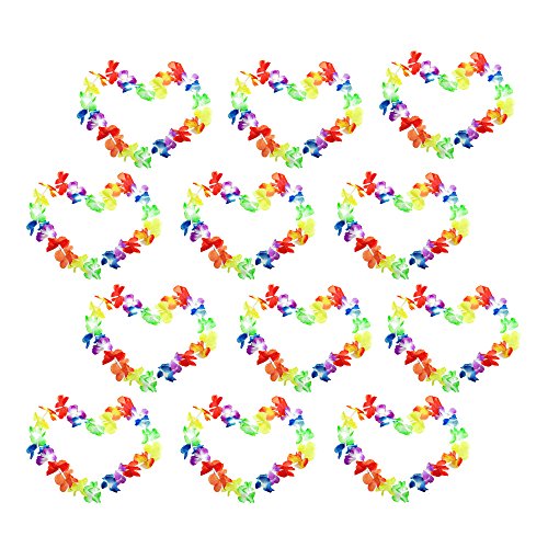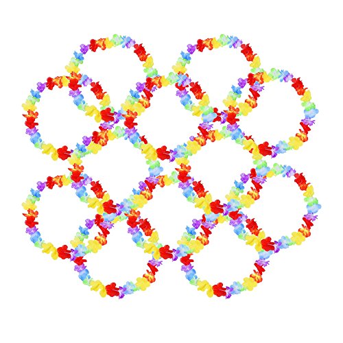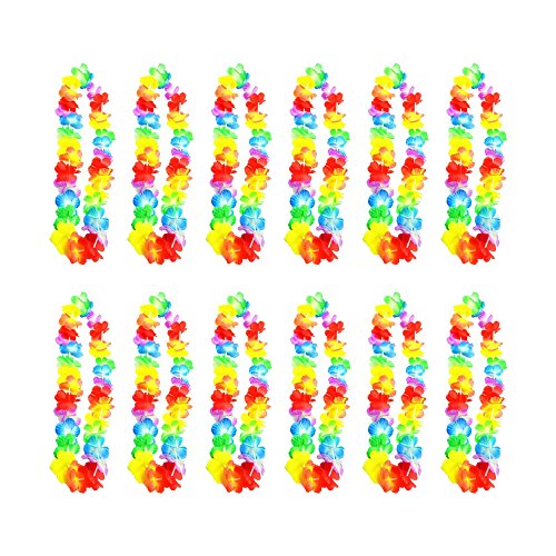 Luau Party Hawaiian Leis Necklace Flower Lei Garland with Mutli-Color & Vibrant Floral Design Hawaii Beach Fun Fancy Dress Party Accessory Pack of 12
