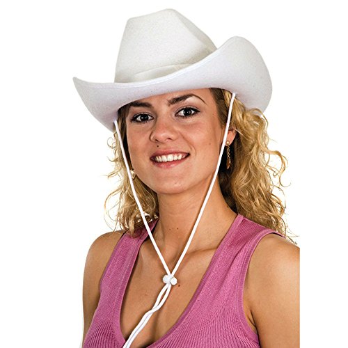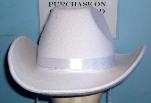 Product DescriptionDeluxe White Cowboy Hat Nice feel and look Material: Felt Color: White Size: Please choose from 57cm or 59cm in drop down menu0