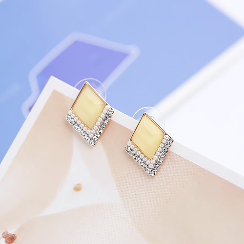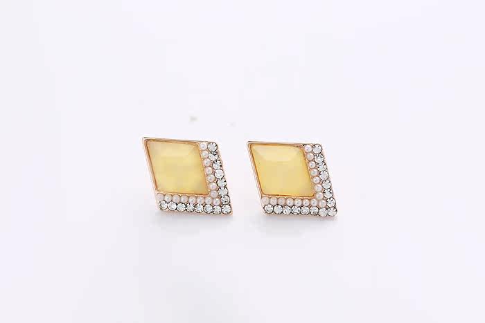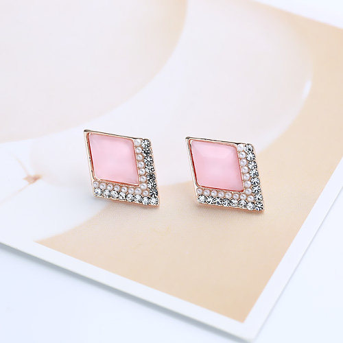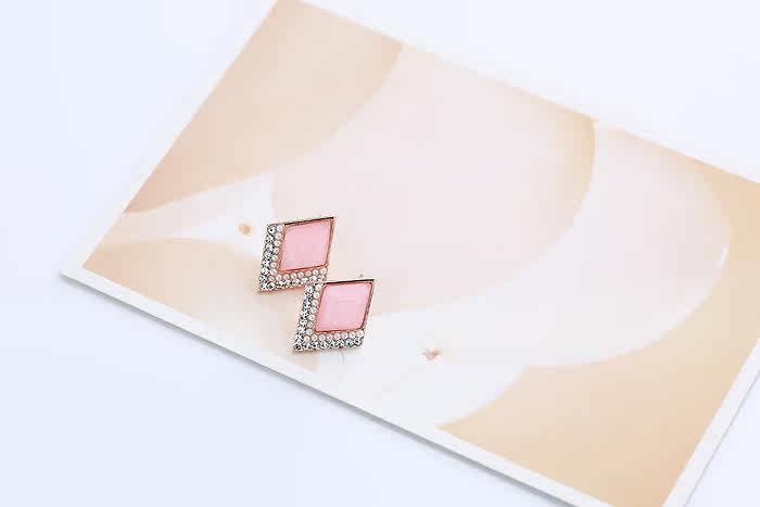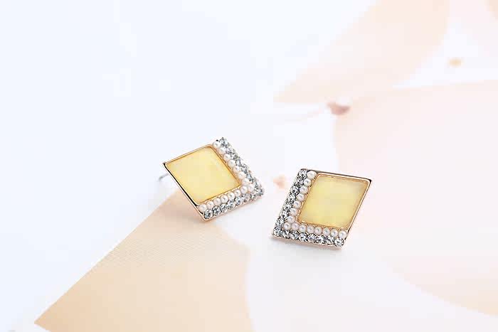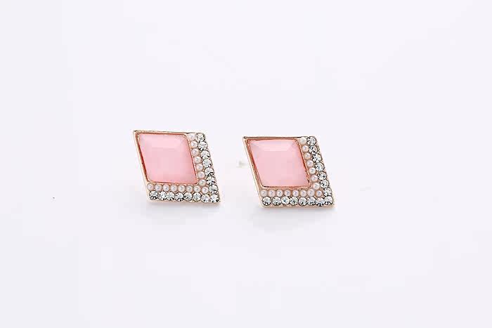Fashion Square rhombus design inlaid with crystal pearl diamond