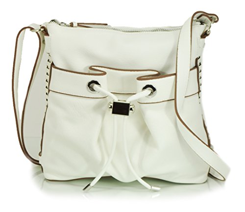Accentuate your look with texture and dimension with the Jessica Simpson Erica Drawstring Crossbody, fashioned from soft faux leather with Drawstring Front pocket. Zipper closure opens to fully lined interior with zip and 2 slip pockets. This satchel keeps items secure while you walk around with fabulous style.