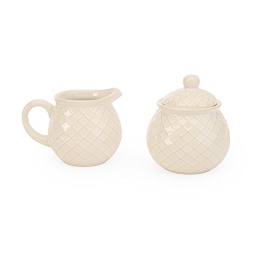 Studio : Signature Housewares Publisher : Signature Housewares Binding : Kitchen Product Description This sugar and creamer set is the perfect way to expand out your Sahara dinnerware collection from Signature. Equip a new apartment, condo or home with this ivory, patterned, transitional collection. It's a steadfast collection that is sure to please; all Sahara pieces have coordinating rim designs including scallop, honeycomb, wave, and waffle patterns. With plates, bowls and a multitude of serving and tabletop accessories, you can build your collection over time. The 100-percent lead-free stoneware is durable enough to withstand the microwave and dishwasher for years of everyday use. For entertaining or quiet nights at home, the Sahara collection is made to stand the test of time. 0