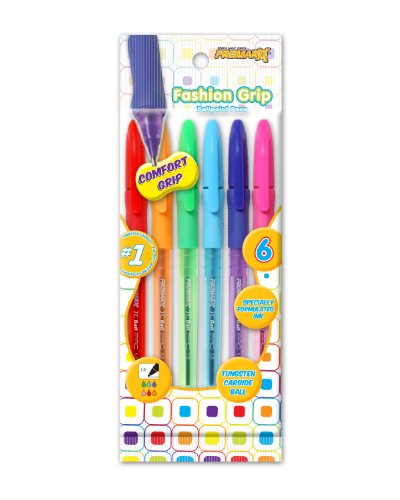 Promarx TC Ball Pro Grip Fashion Stick Pens, 1.0 mm, Assorted Colored Ink, 6-Count